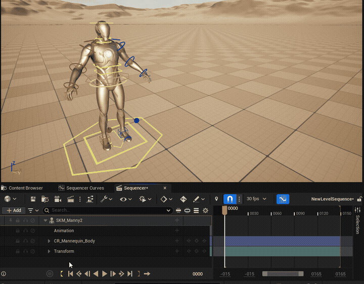 Similar to the Maya-Unreal Bridge plugin, the streamed animation data from Cascadeur is played in Sequencer by applying the sequence to the target skeleton mesh.