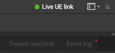 Additionally, the notification Live UE link will appear in the top right corner of the Cascadeur window: