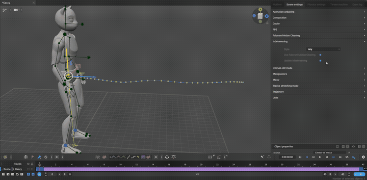 ● Inbetweening works separately from physics tools. Because of this, animations produced by it might not be physically accurate.