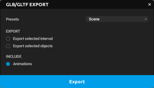 This page describes how to export Cascadeur scenes to GLB/GLTF files.