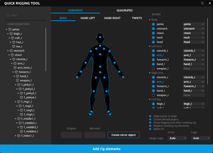 After this, the Quick Rigging Tool window should appear.